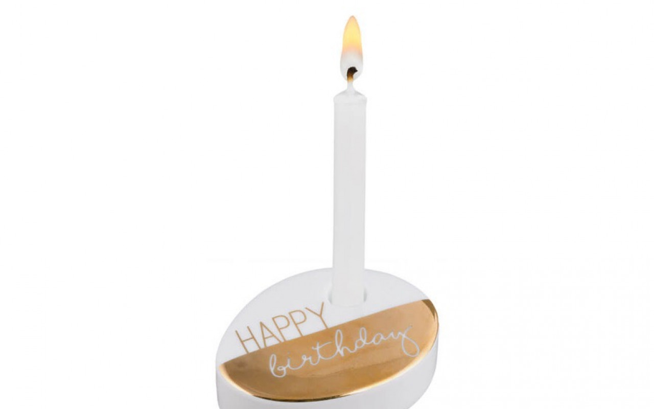 Minikerzenständer aus glasiertem Porzellan mit handelsüblicher Baumkerze.